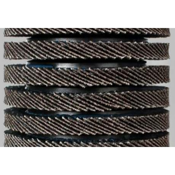 Внешний слой представляет собой пластиковую или фибровую крышку, прочно склеенную с многослойными абразивными лепестками. Такая конструкция гарантирует стабильную эластичность при работе на высоких скоростях и обеспечивает эффективный отвод тепла через промежутки между лепестками, что предотвращает перегрев и повреждение заготовки или преждевременный износ абразива.